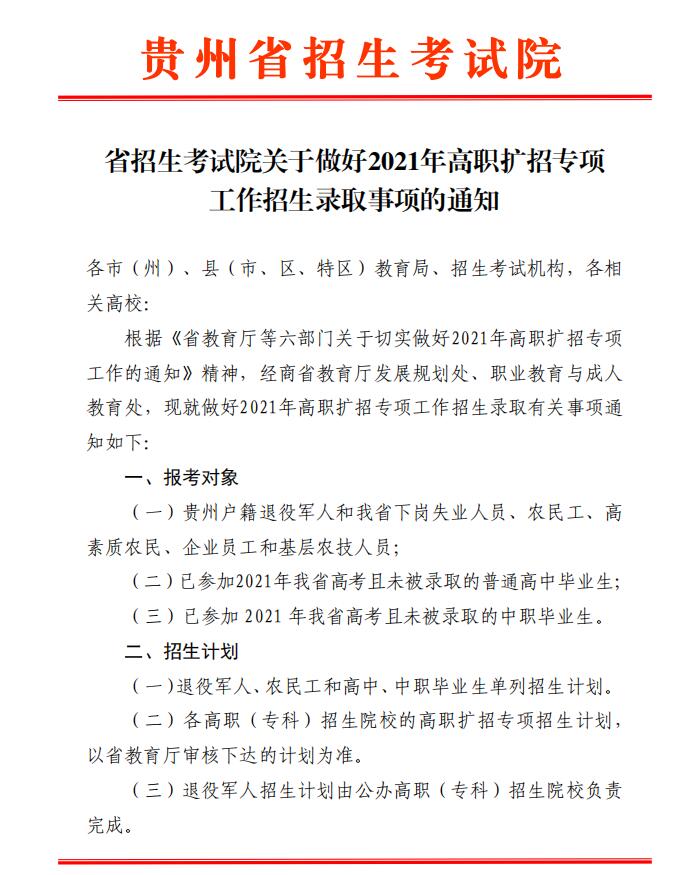 省教育厅等六部门关于切实做好2021年高职扩招专项的通知