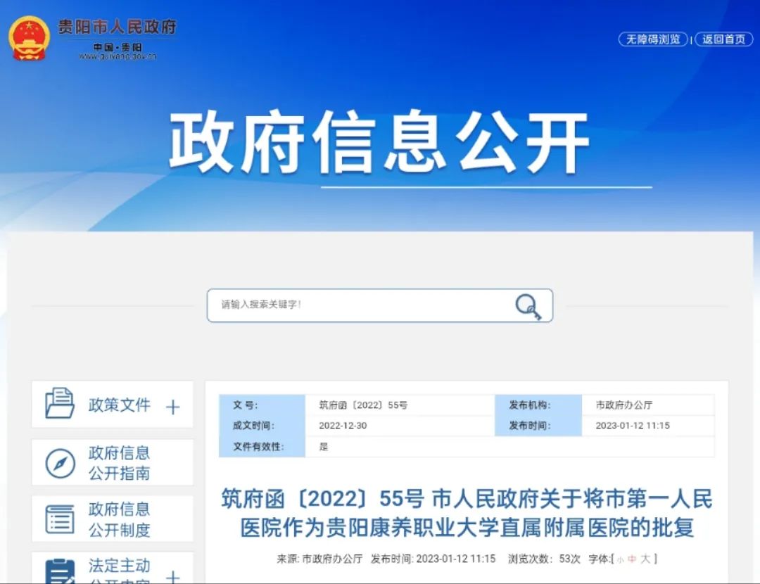 1月12日,贵阳市人民政府网发布《关于将市第一人民医院作为BB贝博艾弗森直属附属医院的批复》,具体内容如下: