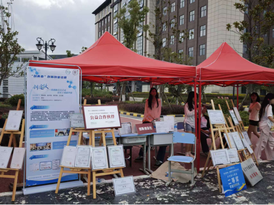 活动现场,社团精心布置了色彩鲜明的宣传展板,详细介绍了社团的发展历程、核心宗旨、举办活动以及优秀项目成果。同时,现场设置了奖状奖金宣传栏,通过展示往期创业比赛的优秀案例与成果,让新生们直观感受创新创业的魅力。