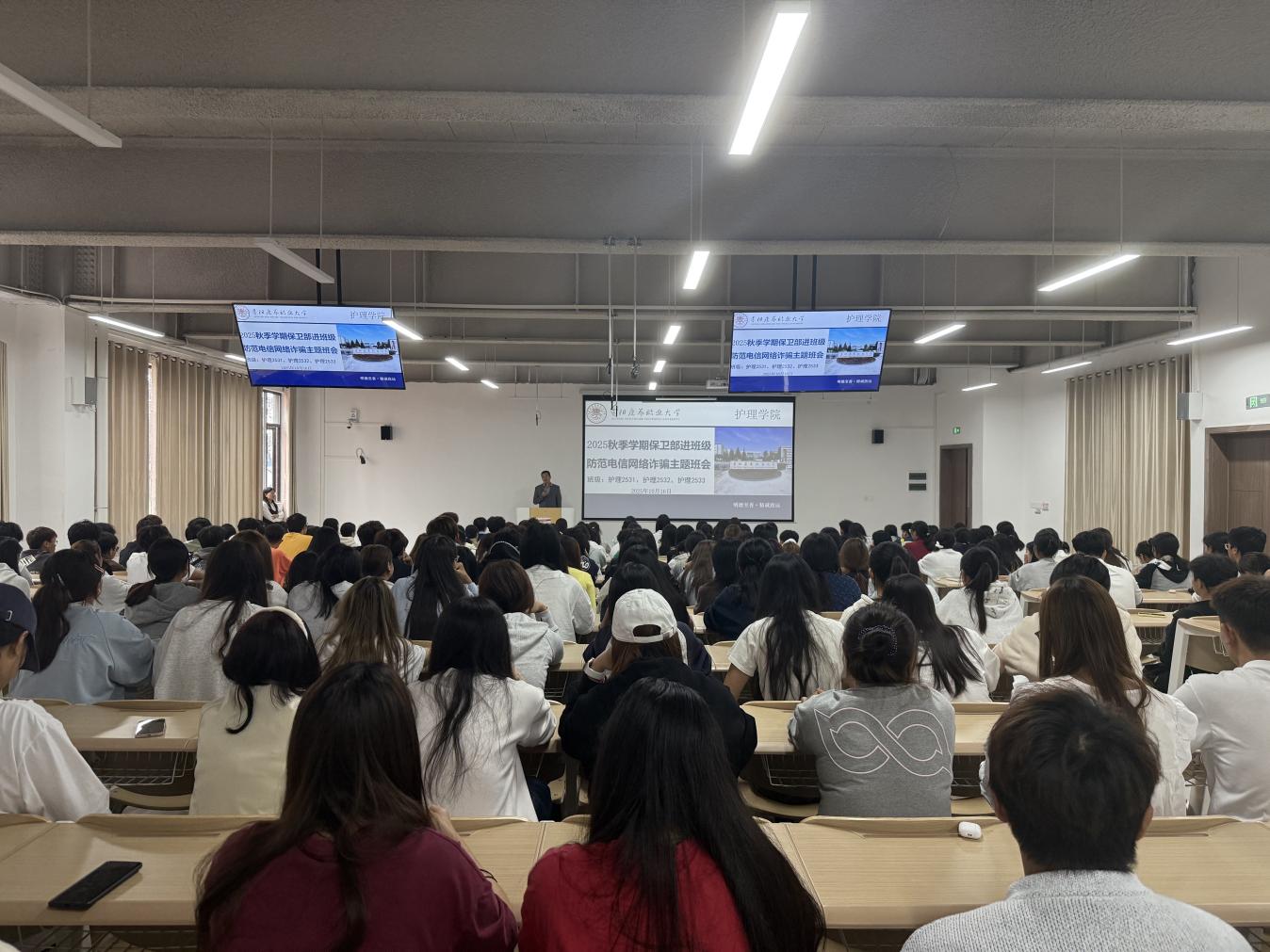 “我们正将电信网络诈骗从‘点’上的个案,转向‘面’上宣传教育的全覆盖,力求拼出一张完整而坚实的安全治理版图。”校党委常委、副校长杨俊基介绍,学校健全完善了以党委书记、校长为双组长的高效权威的安全治理领导体制,制定了《“保卫部进班级”工作法项目化推动电信网络诈骗防范工作方案》,构建了决策层、执行层、末梢层“三维联动”治理共同体,成立以辅导员为组长,班长、宣传委员、心理委员、寝室长等组成的反诈工作小组,确保在校党委的领导下有力有序开展工作。