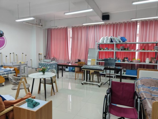 智慧养老与现代家政学院目前建有两个产教融合实训基地,即智慧健康养老产教融合实训基地、现代家政管理产教融合实训基地。基地总面积2200余平方米(含护理学院、卫管学院共建部分),实训室30余间(含护理学院、卫管学院共建以及新建部分),实训设备917台套,总价值1199万余元,拥有智慧养老服务管理平台、认知功能评估训练系统、电动减重步态训练系统、电动家居旋转床、马桶起身升降椅、沐浴推床等先进仪器设备,同时可满足600余学生开展实训教学;目前基地可开设校内实训项目共计90余个,实训项目开出率达100%。