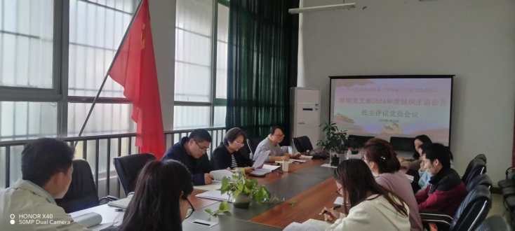 结合学校贵康大党建办发〔2025〕2号文《关于召开2024年度组织生活会和开展民主评议党员工作的通知》要求,体育与文旅学院教师党支部于2025年3月24日在学院会议室,以党员大会形式组织召开了2024年度组织生活会及民主评议党员。会议由支部副书记张晓春主持,支部全体党员参加会议。
