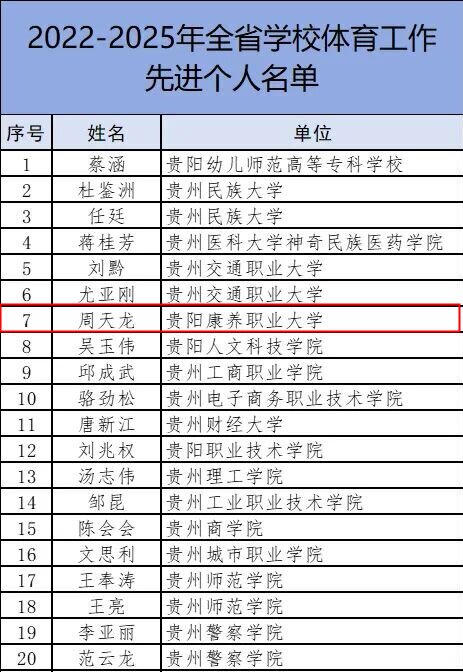 喜报:我校周天龙老师被评为2022-2025年全省学校体育工作先进个人